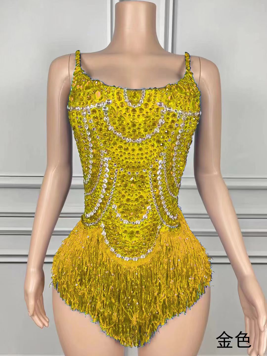 Crystals Tassel Bodysuit Sexy Dance Show Costume Carnival Party Stage Leotard