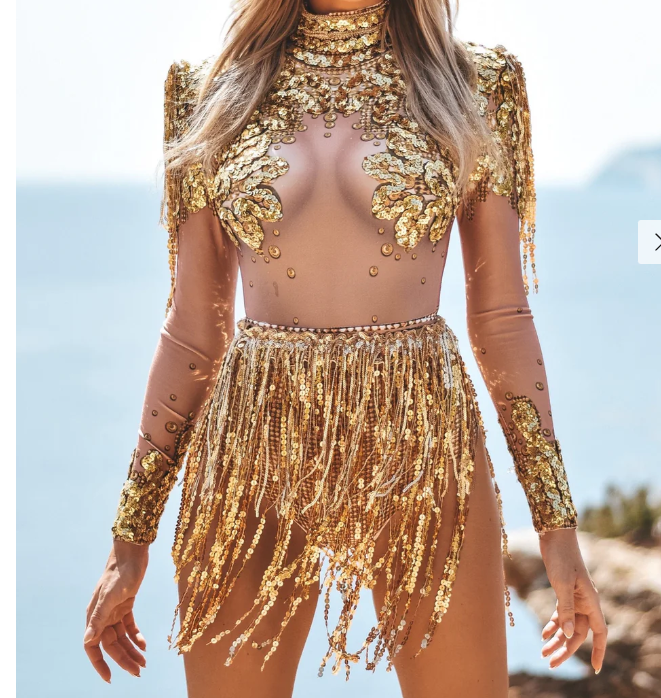 Silver Rhinestone bodysuit Fringe Tassel 2-Piece Set