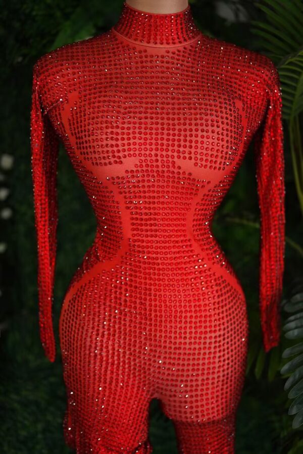 Red Rhinestones Jumpsuit With gloves