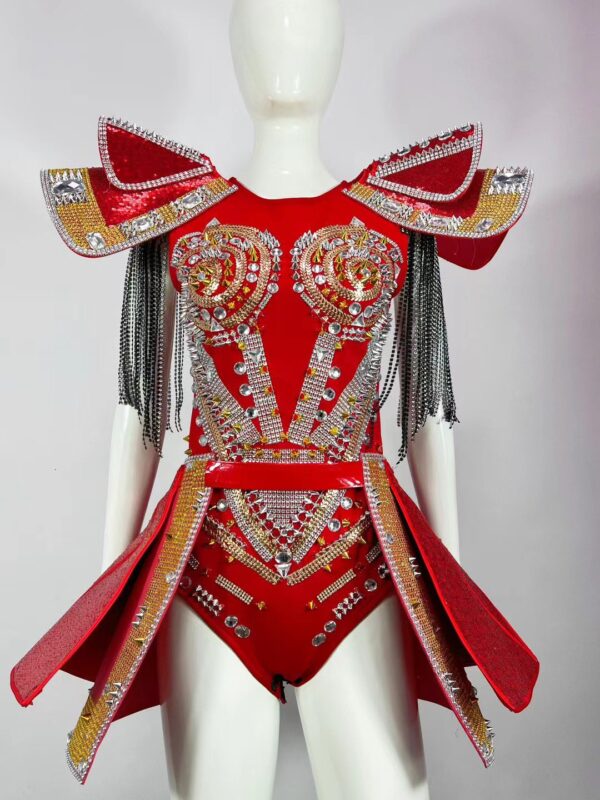 Red Crystals Tassel Bodysuit